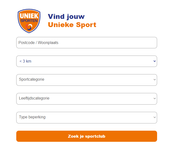 Wil je de widget van Uniek Sporten presetten met jouw postcode, woonplaats, sport(en) en of beperking(en)? Vul deze dan hier in.
